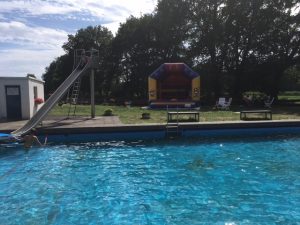 Unsere kleinen Gäste konnten sich auf der Riesenhüpfburg austoben und danach im 20 Grad frischen Badewasser abkühlen. Fischbrötchen, selbst gebackener Kuchen und Bratwurst fanden neben den üblichen Leckereien vom Kiosk auch guten Absatz.